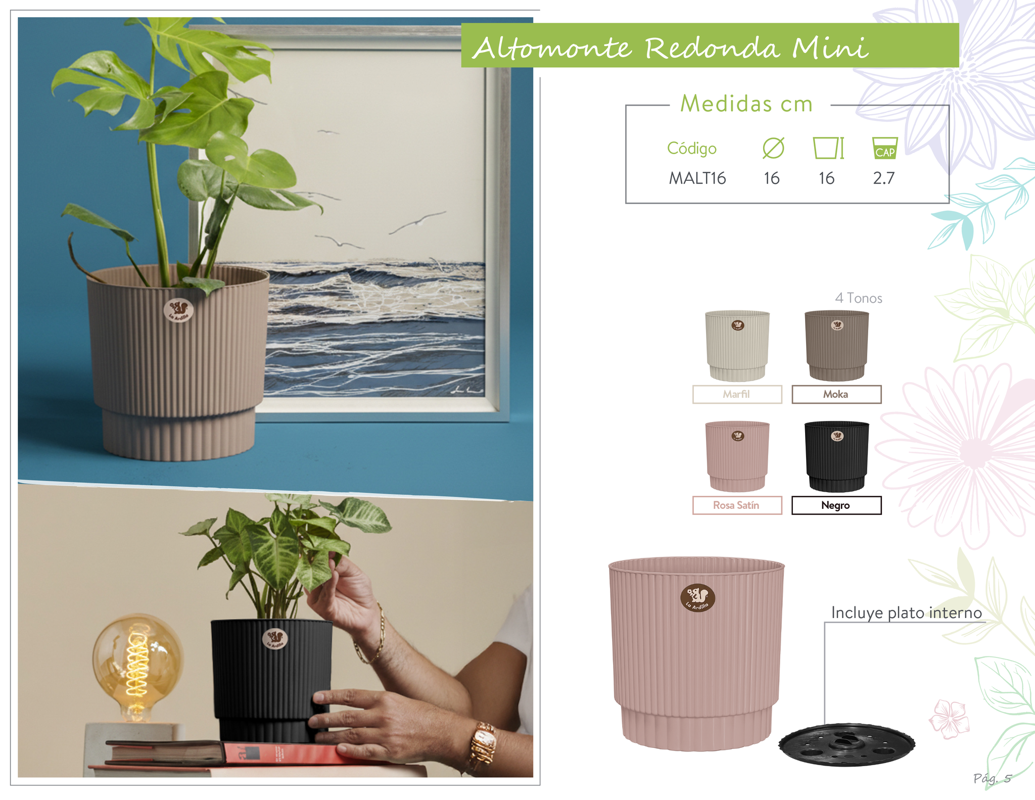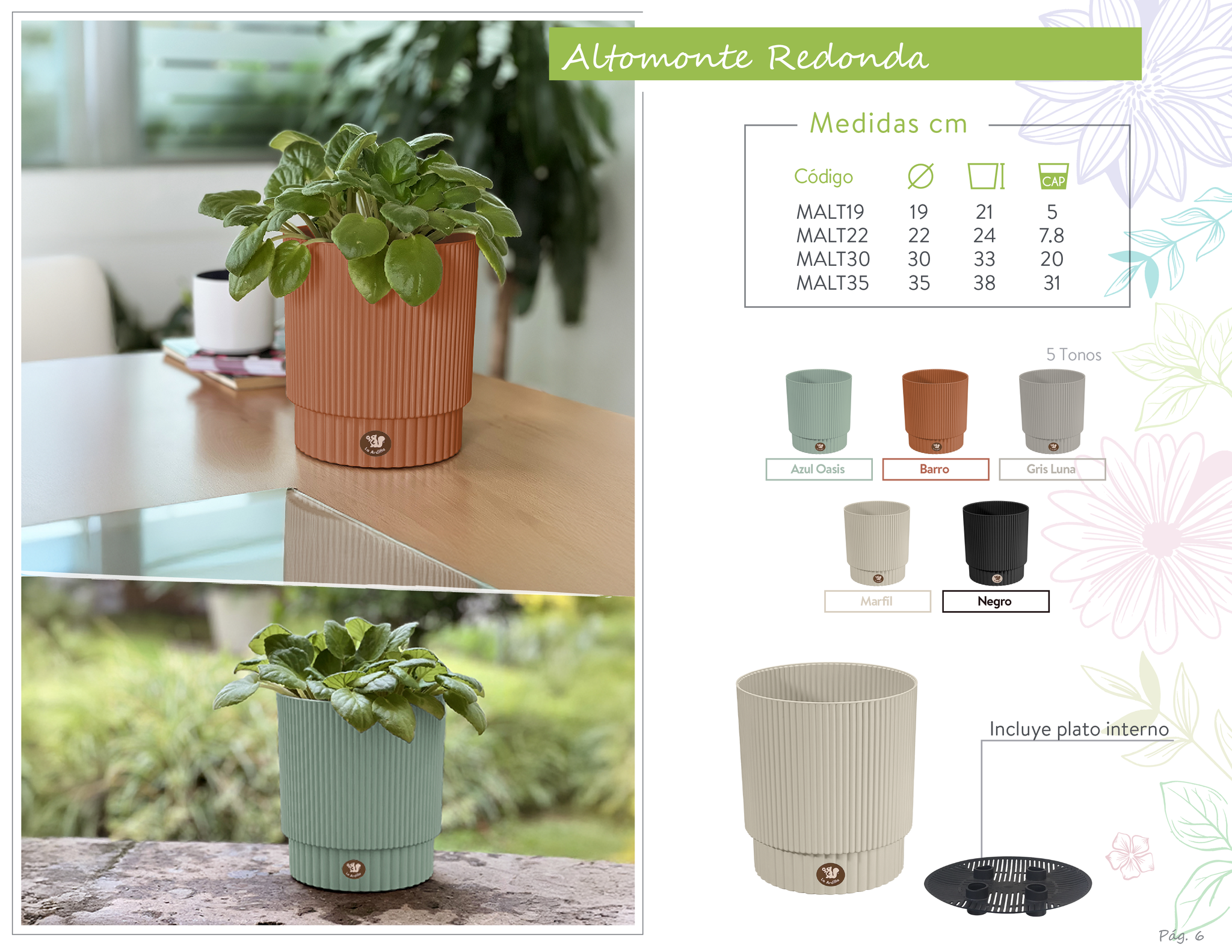 Macetas plásticas con diseños propios y únicos toques artesanales, que transforman y embellecen cualquier espacio.